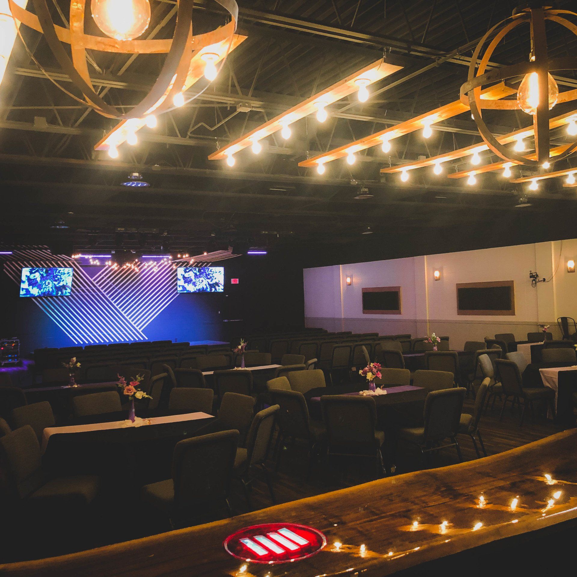 Our 7000+ sq ft facility has been recently remodeled and includes the ceremony main room, a covered outdoor pavilion, dressing rooms, a fully stocked commercial kitchen, state-of-the-art A/V, and enough room for both wedding and reception in the same building.